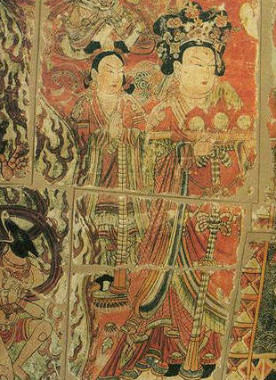 除了上述主题之外,中室的三面壁上也有观音、行道天王或涅盘变相、西方变相、药师变相、法华变相、地狱变相等大画面的净土变相,及以供养者自居 的维吾尔贵族、摩尼教的圣者、景教教徒等的壁画,内容千变万化;一般人通称为回纥样式。倘撇开主题的多岐性不谈,此窟群的壁画的确深具艺术价值。此外,就 汉文、回鹘文双行并写的榜书看来,可见当时回鹘与汉民族间的关系密切。