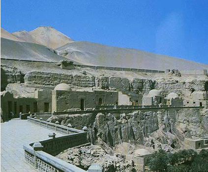 伯孜克里克石窟位于新疆维吾尔自治区吐鲁番市区东北约 40公里的火焰山峡谷木头沟河西岸。“柏孜克里克”在维吾尔语中有“山腰”之意。窟群散布在河谷西岸约一公里范围内的断崖上,分三层修建,现存洞窟83个,其中有壁画的40多个,保存壁画总面积1200平方米。