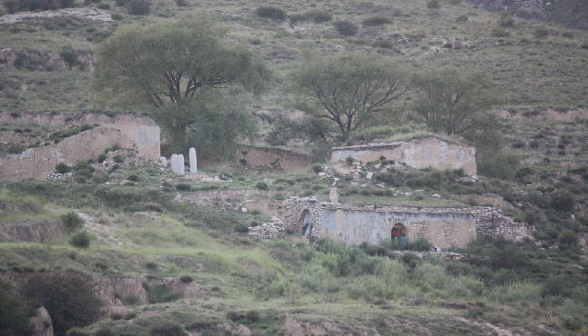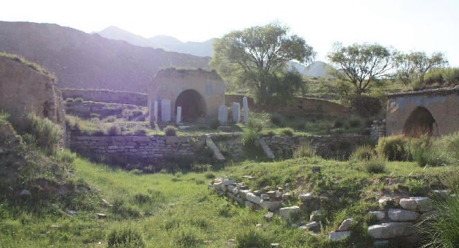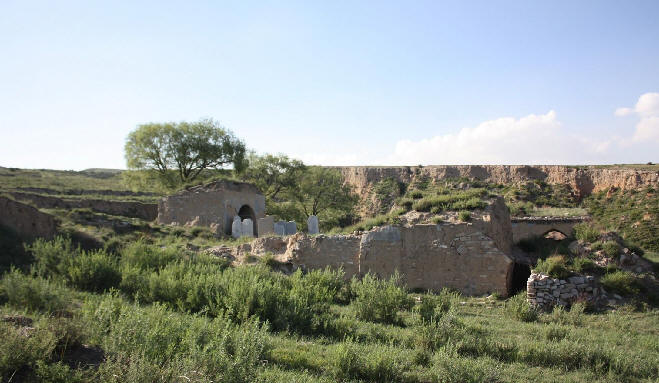 第二阶是个小院,小院的左右各为两间土窑,古时用作僧房,而今也多塌毁。据老人们的回忆,以前院的右前方为庙门,庙门又一分为三,中间一大门,大门两旁 各一小门,三门并立,佛教中称其为“三门”,又因“天下名山僧占多”,寺院多居于崇山峻岭之中,故其又称为“山门”,三门在佛教中象征“三门解脱”——空 门、无相门、无作门。听老人言:三门当年也曾巍巍峨峨,与身后的大殿、青山遥相呼应,现在却今非昔比了,三门几乎成了老人们的记忆,年轻人的遐想,它现在 除了一个突显起来的小土丘外再无其他。