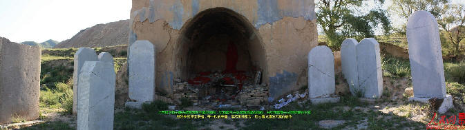 当然还有比这“查无可考”更可惜、可叹、可悲的事。“文革”的悲 哀,整座庙的悲哀。在“文革”的“除四旧”口号中整座庙宇被拆毁,第三阶,这整座庙的精华也沦为废墟。第一阶中主殿的前庭以及奶奶庙、龙王庙和厢房均被拆 毁。传说在奶奶庙拆毁的前夕,四奶奶的塑像曾哭泣不止,是夜,四奶奶塑像不翼而飞。奶奶庙拆毁后,人们说四奶奶曾在五台山显圣。至于主殿的后庭——半间石 窑,大概庙小不容佛,佛搬了出去后,奶奶却因舍弃不下自己的子孙,于是领着她的子孙们(小泥人)搬了进来,就这半间石窑成了现在名副其实的奶奶庙。每岁庙 会,这儿仍多有供奉。石窑外面则散落着七块残碑、断碑,然而也就是这遗留下来的残、断碑却见证了这古寺的沧桑。