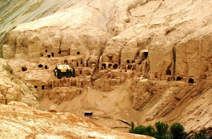 吐峪沟千佛洞位于新疆吐鲁番鄯善县吐峪沟乡,大规模开凿于前凉至麴氏高昌时期,至唐时达到鼎 盛,敦煌出土的唐代文献《西州图经》就记载:“丁谷窟有寺一所,并有禅院一所。右在柳中县界至北山二十五里丁谷中,西去州二十里。寺基依山构,揆疏阶,鹰 塔飞空,虹梁饮汉,岩峦纷虬,丛薄阡眠。既切烟云,也亏星月。上则危峰迢遰;下则轻溜潺湲。实仙居之胜地,谅栖灵之秘域。见有名额,僧徒居焉”。回鹘高昌 时期,这里的佛寺得到进一步的发展,后没落无闻。1879俄国人雷格尔第一次踏足这里,之后的数十年,一批批远道而来贪婪的匪徒洗劫了千佛洞。这里90% 的壁画以及洞内文物几乎全部外流异域,留下的只是而今的一段段残墙破壁,这也是为什么有专家说吐峪沟千佛洞已无多大旅游参观价值的原因所在。下面所要列举 的就是从1893开始一直到1914年,吐峪沟千佛洞所遭遇到的劫难。