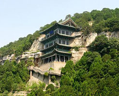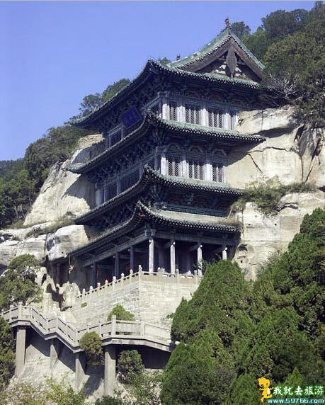 又名弥勒阁。北汉时已有弥勒大阁,明正德初年(公元1505年)又建高阁,以护石佛,现存大阁为1986年重建。阁倚壁而立,三层四重檐歇山顶,气势雄伟壮观。