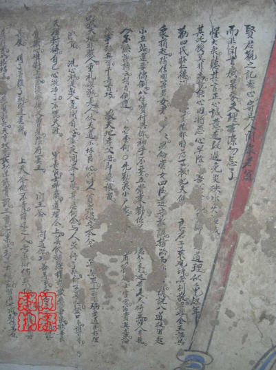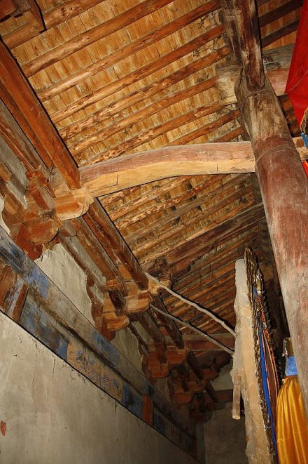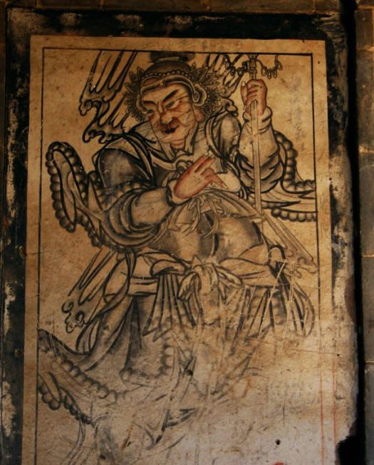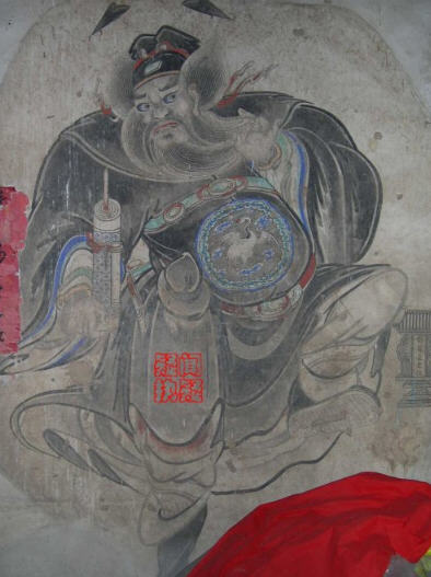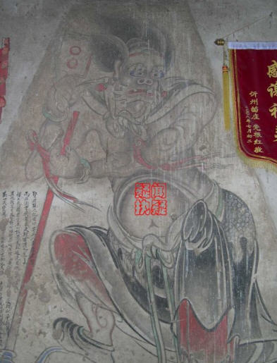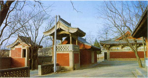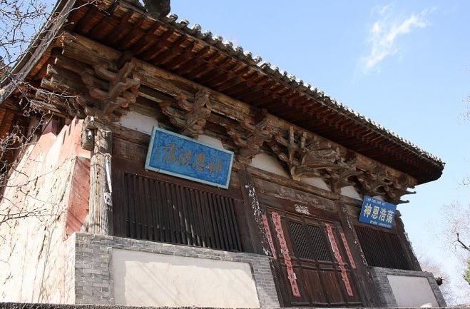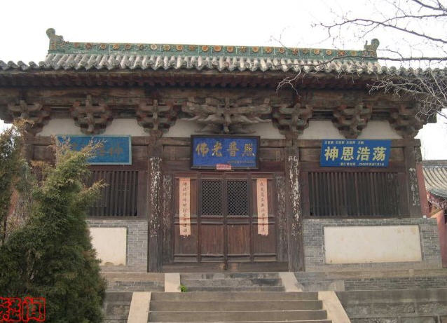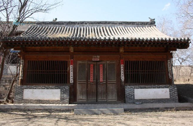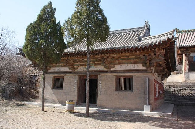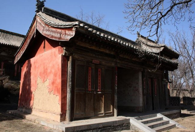 南面紧靠山门的是奶奶庙和老爷庙:西侧的一间为送子观音菩萨;东头的一间塑有山西人最崇拜的武圣人关羽,中间的一间辟为过殿。
