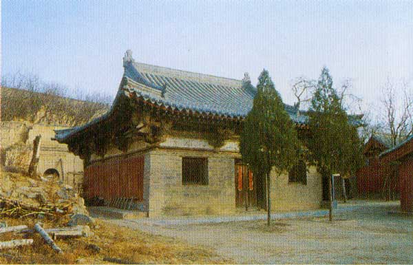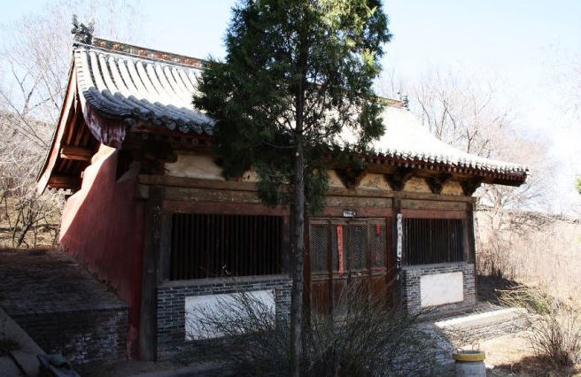 文殊大殿东侧是三教殿,明嘉靖二十年(1541)重建,悬山顶式建筑。原有孔子、释迦牟尼、老子的塑像。三尊教主塑在一起,以三教殿为名,实为儒释道三教“统一战线”的殿堂。