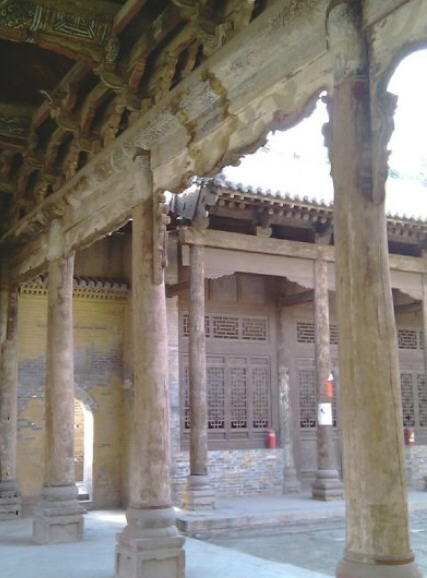 大悲院献殿面阔三间,进深三间,梁架三椽柑对三椽柑,殿内用中柱,单檐歇山灰瓦顶。柱头,补间斗拱五铺作,琉璃脊刹。吻兽,整体设计科学,结构严谨对于研究我国宋金时期建筑的结构法式具有很高的科学价值。
