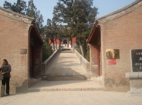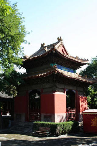 来到东 岳庙所在地,首先映入人们眼帘的是影壁上的“蒲县胜景”四个大字。东岳庙创建年代不详,金泰和五年(1325)已有,历代修葺。由此北上,沿长虹磴道,经 土地祠、将军祠、“御马厅”、“莲云厅”,便可远远望见山门。穿山门往上望,可见登仙桥,它是凌霄殿通往天堂楼的唯一通道。凌霄殿的神龛塑像是黄滚夫妇, 即黄飞虎的父母双亲。在乐楼背后的通道口有一幅醒目的对联,它是蒲县的一个知县写的,上联是“伐吾山林吾勿语”,下联是“伤汝性命汝难逃”。大概是因为有 这幅对联的原因,柏山的树木保护得很好。从乐楼下到看亭里,南望是正面乐楼,再看东、西两侧还各有一乐楼。显然这里过去可以同时演出三台戏,其热闹景象可 想而知。正面乐楼横楣有精致的木雕,其内容为人物故事,左为“渔樵”,右为“耕读”,中间是“八仙庆寿”,并有花卉穿插陪衬。工艺细致精巧,深受游人赞 赏。