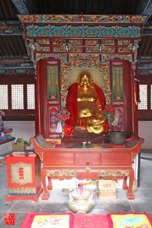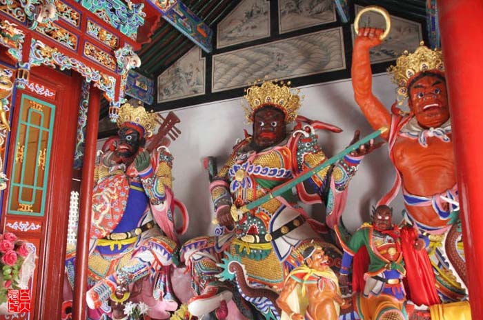 龙泉寺内有三所院落,互相串通,同时又各有山门,白成格局。东院是殿院,有三层殿,最前面的叫天王殿,里面供奉大肚弥勒佛,背后是韦 驮,两侧是四大天王。此外,还有哼、哈二将和降龙、伏虎。中间的一层叫观音殿,里面供奉普贤、观音、文殊等三大士,两侧是十二圆觉菩萨。后面是大雄宝殿, 里面供奉阿弥陀佛、释迦牟尼佛、药师佛,两侧是十八罗汉。