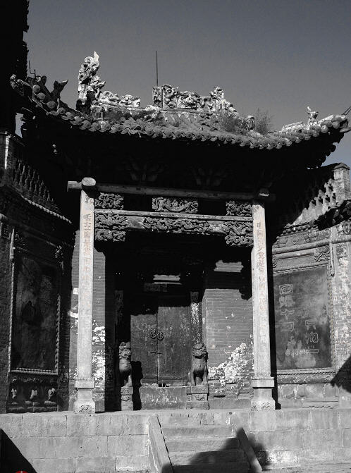 门前数十尺左右石阶对峙,平台后为山门,面宽三间,重檐歇山顶,山门两侧各跨单檐歇山顶小旁门一 座。一进院为单檐悬山顶戏楼五间。二进院为拜殿、正殿。正殿面宽五间,进深八架椽,单檐歇山顶。正殿两侧各有配殿三间,配殿两侧为禅院。全庙共有殿宇50 余间,全系砖木结构。山门为重檐歇山顶,屋坡彩色铜瓦铺制,屋顶有彩色图案,另有彩色龙吻对峙,彩色琉璃剪边。形制别具一格,十分壮美。