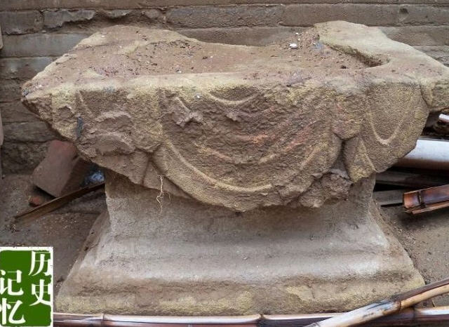 另外,宣梵寺大殿内墙壁上还残存有明显的壁画痕迹,以及几件石刻,其中一件石刻为砂石质须弥座,造像的衣褶还留存在上面,看风格可能早于大殿时期;另一件石刻可能是供桌的底座,呈圭角状。其余几件石刻则可能是神坛的条石构件。