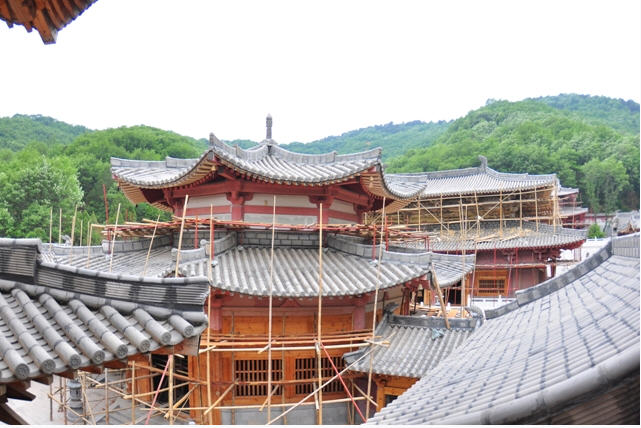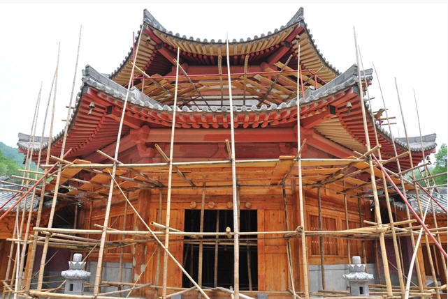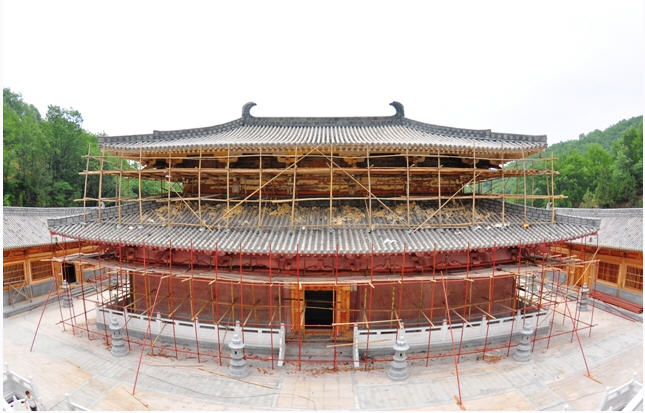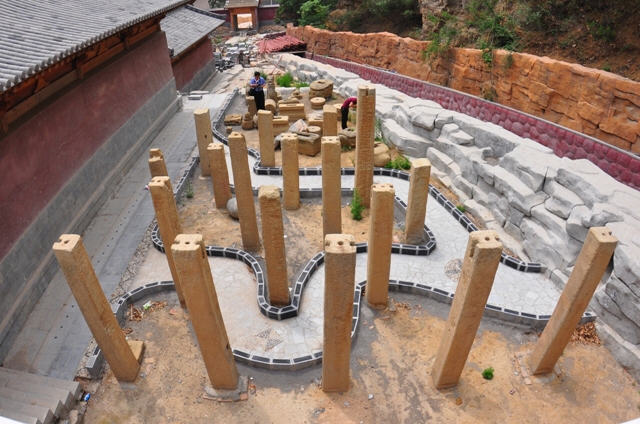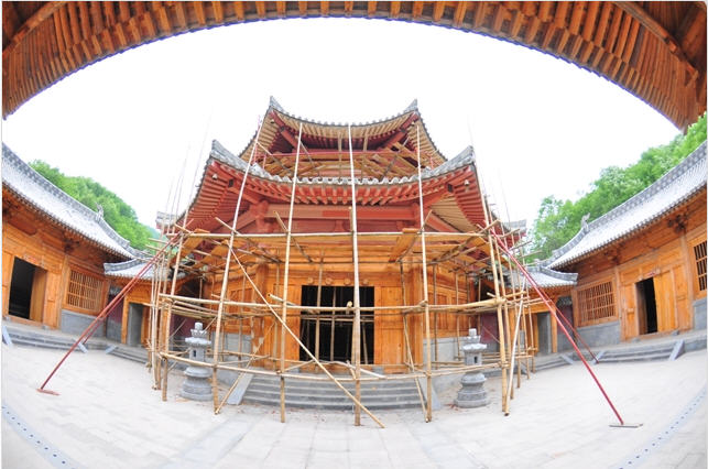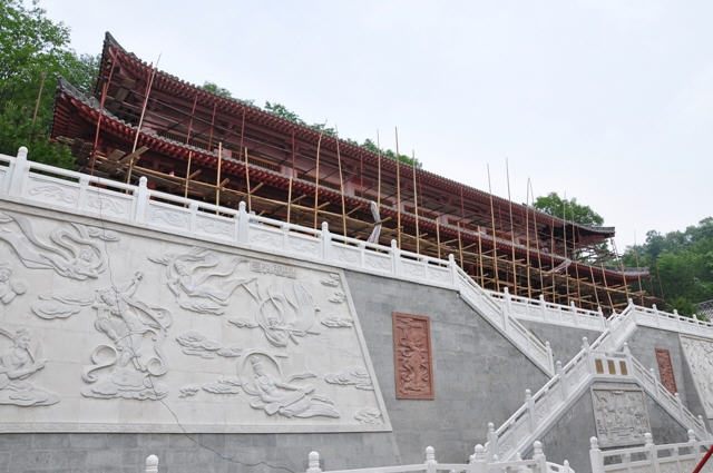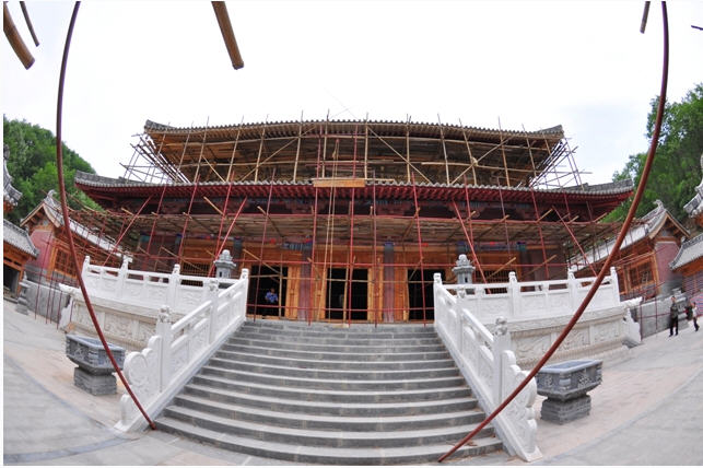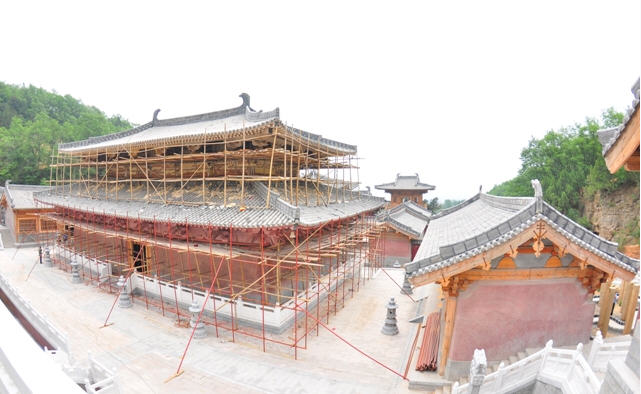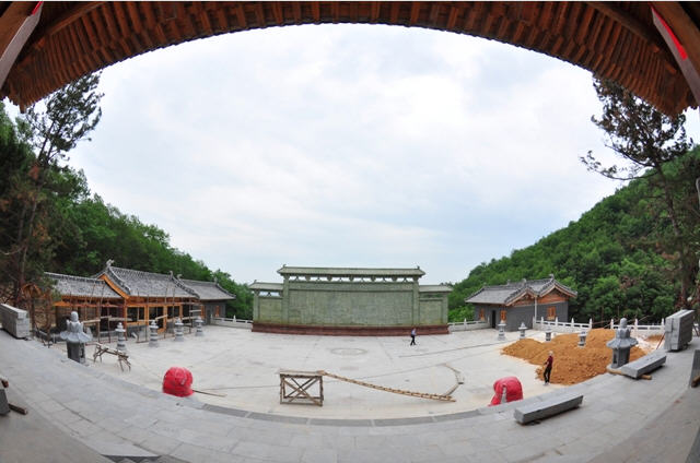 乾明寺位于辛壁村西北部,距李庄自然村约500米。明清数次重修、增修,是可寒山 南坡的一个四面环山、十分幽静的寺院,是由大大小小几十个小院组成的美丽院落,每个院的殿堂里都塑着大小不等的各路神像。寺前相对的两山脚下,各有一株很 大的白皮针叶松,青白的皮,嫩绿的叶,根深叶茂,树干十几个人合抱不住。此树生长多少年,无人知晓。在山坡水土流失的地方,露出粗壮的长长的树根,游人都 当成独木桥爬来爬去,在两树之间,建有一座高高的珠楼,这是乾明寺第一大美景——“二龙戏珠”。寺的最后有一座三层高的珠楼,名叫:“望月楼”。登上此 楼,凭栏四眺,群山叠翠,白云缭绕。寺院内古树参天,石碑林立,花草芬香,。清清泉水,绕着院内小径潺潺流过,顺着“二龙”口流下沟。寺院背后,可寒一脉 峙为五峰蟠龙踞虎,维东有松,维西有栝,中有崇冈,结聚团美,山势围合顾视五龙争珠。环境优美,建筑宏伟,佛门胜地,香火兴旺。可谓“窈窕西山路,孤峰向 自尊,秋花隐危石,斜日到闲门,鸟影烟中寂,泉声雨后喧,法云堪倚徙,不拟向前村”。