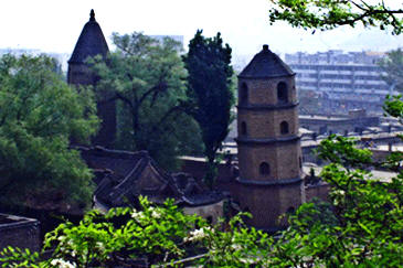 双塔寺 位于柳林县城贺昌村羊道口西侧。座北向南,平面布局为四合院,占地1612平方米。该寺始建年代不详,现存建筑为元、明、清代混合结构,比较完整。 该寺南进山门后,东西屹立着一空一实砖塔两座,两塔相距17米,平面八角形,东塔内空可攀登而上,西塔内实,为仿楼阁式仿木结构,共分五层,上层塑像1 尊。寺前有水渠1条,每当日晖斜沐,双双塔尖投影水渠,犹如投笔砚中,故有寓意双笔,文人辈出之美言。
