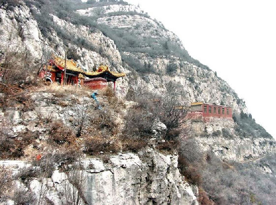 道,像一条玉带,崎岖艰险,窄处宽不盈尺,上接蓝天,下临深沟,景色虽佳,然却有九折、老虎口之险。如今好了,嶝道拓宽了,嶝石改成了石阶,崖边正在安装水泥立柱和铁索,游人大可发足攀登了。