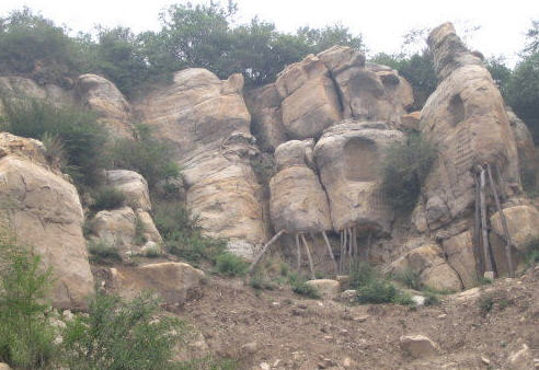 童子寺东北里许的山崖上,为石门寺遗址。有一石窟,内雕石佛从像一尊,高约九尺,是隋唐风格。经窟西十余步,又有一窟,其中仅存佛座,壁上有唐咸通间(860—870)段公悦等题名。