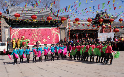 广庆寺,位于东寨镇二马营村内,明代建筑,县保单位。创建年代不详。梁题记:成化十 四年(1473年)和清道光四年(1824年)曾重修。坐北向南。现存正殿、朵殿、东西配殿、山门、钟楼。正殿面阔三间,进深两间,五踩双昂斗拱,明间斜 拱,东西配殿各五间,左右朵殿各三间,山门三间,均为悬山顶。钟楼十字歇山顶内挂明嘉靖年间铸钟一口。保存完整。