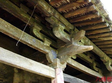 关于梁栿出跳,最著名的例证是天台庵正殿和龙门寺西配殿,这两个都是我国现存木结构中最古老的遗存之一。因此,在她们的影响下,“梁栿出跳”一般来说被 我们认为是个很扎眼的早期木结构特征。其实也不然,后期也有“梁栿出跳”的例证,由于梁栿在木架构中包括的具体构件比较多,劄牵也是梁栿之一,而太谷的井 神真武庙就是劄牵直接出跳(下图右)。
