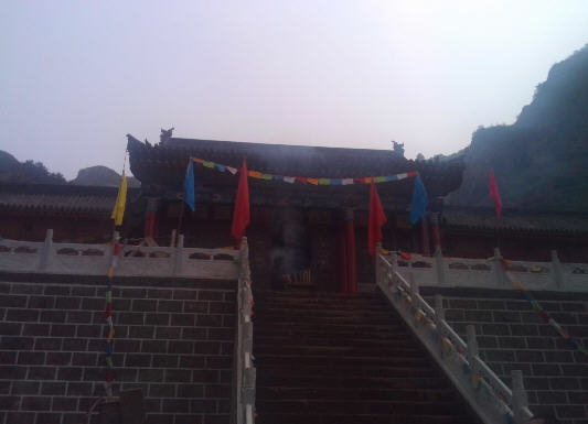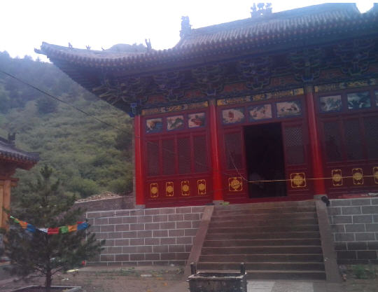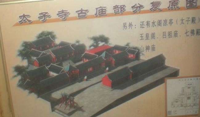 黄华山为荷叶坪支山,僻处静乐县西北隅20 公里万辉沟的腰庄、东马坊二村之间,坐西南向东北。山势起伏如屏如障,中峰高而面凹其腹,左岩石隆如巨钟,如覆釜,如甑,松从石窦出,苍翠屈盘。右岩石 砖,突如简,削如圭,怒如虎斗,企如鸟厉,与苍官凌踔不相下。两岩平地而起,锐上半下,万仞之高插于腹边,如张两翼。背绵延挺拔,沟壑相连。通山佛螺姝眉 现绀,碧色万松成林,风起谷啸涛涌,白云挂其巅,飙轮撼之不欲去。山以寺胜,峰以邃胜,石以瘦胜,松以巨胜。 寺因山为基,坐落于簸箕形腹凹处,创建于金元时期,扩修于明、清两代。集中的寺庙群东西长116米,南北宽83米。寺之结构为:山足为坊,顺坡历阶而上为 三楹高大木排楼山门。进山门阔场后为戏台,台对面五问高大寺院门庭,中间为砖石彻铺戏场,两端各墩一雕刻精美的石狮子,正中对台口生一巨松,三抱合围,冠 呈伞形,荫盖戏场,使观众不觉烈日之炙。进门庭共有相互串通的大小6个庙院。横4院,中东西配殿为娘娘庙、钟鼓楼,左为禅院、听松楼和廊房院,右为火神 庙。竖两院,从娘娘庙院拾级而上为天王殿(过殿),塑四大天王像。穿殿再进一院,对面高石阶上三问大雄宝殿(正殿)巍峨森严,内供文殊、观音、普贤三菩 萨,莲台瓶柳,金吼珠鹦,令人目眩神寒。正殿门前石阶顶两旁各一巨松,直插云天,人们称之为“哼哈二将”。两配殿和两偏殿各为迦蓝、地藏、马王、炎帝、关 帝庙。 寺外,右翼石壁平台上为山神庙,中岩椒下为吕祖庙,上架岭作亭,为水阁凉亭,内正殿三楹,肖“阿育王(梵王)太子像,寺因此而名。殿对面为凉亭,建于20 米高的直壁石崖平台上、,供游人赏景、吟诗、作赋。左东岩椒为玉皇阁,顺石铺小路下至山底即大雄宝殿背后,有八巨松高古秀劲,比肩而列,一字排开,如冠剑 丈夫,人称“八大金刚。”相传古时此地下埋了打碎的巨宝盆,才生此八金刚,并引发满山松林。山后径愈奥、松愈密,幽阴荟蔚,有铁佛祠。 太子寺庙群规模宏大,建筑独特典雅。各庙皆雕梁画壁,彩绘精致,碑匾遍寺,巧夺天工,僧侣禅师朝夕诵经,终日香火不断,为昔日全县第一大寺院。更兼满山松 林蔽日,鸟兽啾鸣,草木效灵,溪水环抱,使黄华山、太子寺成为名山灵寺和清凉幽静的避暑胜地。每岁五月初八为庙会,届时游人满山、商贾云集。寺内历代文人 墨客遗迹甚多。清代龙大人、云南巡抚李銮宣曾每年到此避暑一月。1951年和J968年林业部门曾两次大量砍伐古松。1961至1968年辛村公社在该寺 创办过高小、民办农中。1967年“文化大革命”破“四旧”时,神像被打,庙宇被拆,今仅留禅院石窑三孔,余皆无存,古松殆尽,但天然幼松遍布山头,也甚 茂密苍翠。