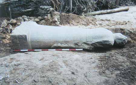 石像高3.9米,腰围2米,手长40厘米,背北面南,立于50厘米高的石雕莲花座上。石像刻线明显,披巾搭胸,细腰束带。雕线棱角分明,刀法洗炼,在个体石像中甚为罕见,为我国古代石雕珍品。