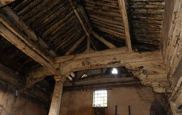 中殿是一个三开间、四架椽的悬山小殿,平面接近方形。屋盖举折极缓,檐出很深。前檐有柱 头铺作,补间隐刻。因为斗拱被封闭在水泥墙内,只隐约可以看到劲直有力的批竹昂,耍头也是昂形的。殿内杂乱地堆放着农具,斗拱里跳毫无遮拦地被呈现在我们 眼前:栌斗很漂亮,具有明显的皿斗意味;华拱两跳偷心,(木沓)头两侧装饰着云头拱;下昂昂尾压在四椽栿下。梁架的结构为通檐无内柱,四椽栿直接承托平 梁,平梁下坐小斗与襻间相交。这样的作法不仅简洁轻盈,而且使屋盖更加的平缓。后世在后檐平槫的前侧又添加了两根内柱,柱头上置栌斗,出实拍拱承托四椽 栿。实拍拱的形制和平顺回龙寺的酷似,可见添加内柱的时代也并不很晚,很可能是宋末金初。与前檐相比,后檐的铺作更换较多,绝大部分都不是宋代原构。
