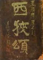 位于陇南市成县城西13公里天井山麓崖壁上。《西峡颂》,全名为《汉武都太守汉阳阿阳李翕西峡颂》,因表文前“五瑞图”中有“黄龙”画像及榜题,俗称“黄龙碑”。 高2.2米,宽3.4米。有额、图、颂、题名四部分,额篆“惠安西表”四字。图称五瑞,即黄龙、白鹿、嘉禾、木连理和承露人,阴刻于额之右。颂在图之左,阴刻隶书竖行20行,行20字,计385字,记载武都太守李翕生平,歌颂其率民修复西峡栈道为民造福的政绩。颂之左为题名,隶书竖行12行,计142字,仇靖撰刻并书丹,尾题“建宁四年(171)六月十三日造”。