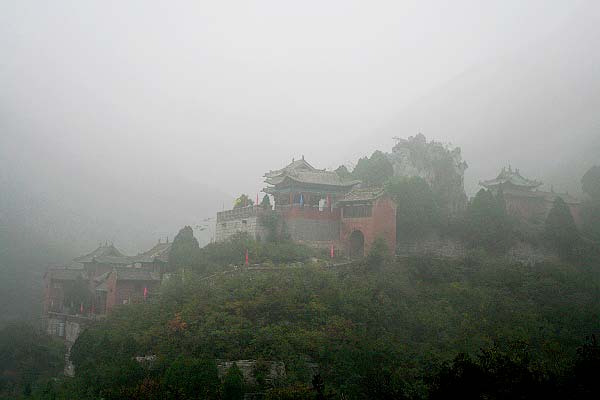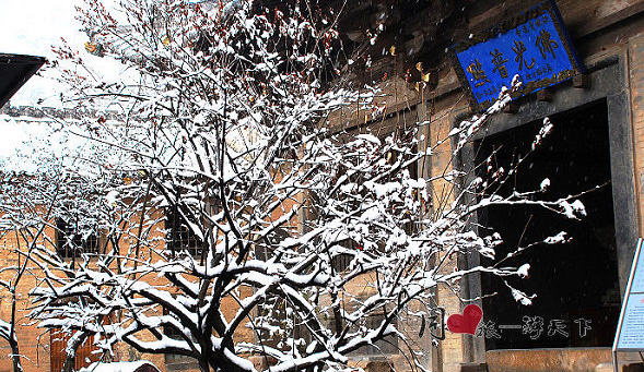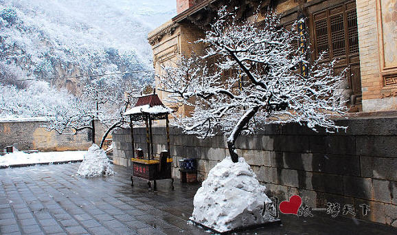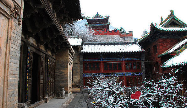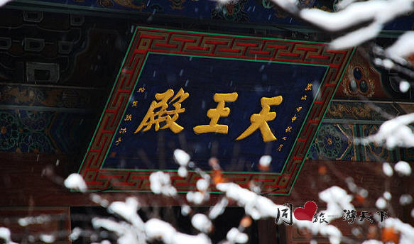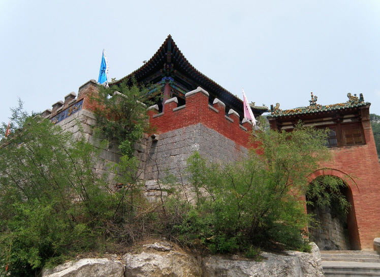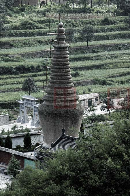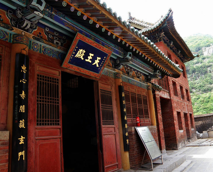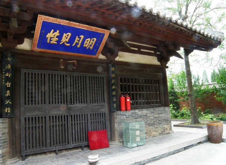 寺院前面是一个坪台,坪台东西建有对称的两座阁楼,西阁门洞前还有两只唐代石狮,古朴可爱。坪台之后是天王殿兼山门,两侧各有掖门,左右是高达三层的钟楼、鼓楼。