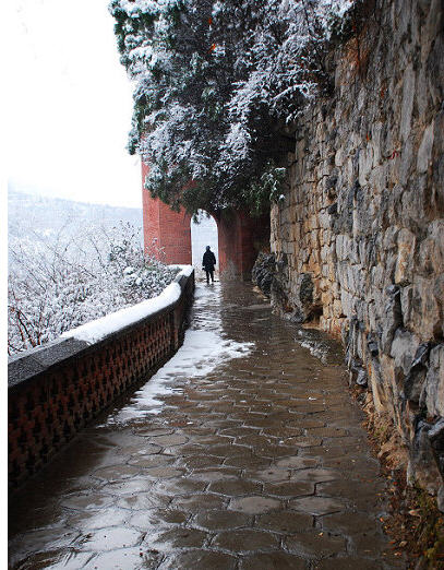 寺乐侧有一堵石壁,上面刻“掷笔台”三个大字,这是纪念创建该寺的高僧慧远法师神迹的地方。从唐代就留下了这样的传说,说慧远在寺院注释一部佛经,完成以后,掷笔苍天,笔在空中停留不坠,所以后人把掷笔的地方称为“掷笔台”。