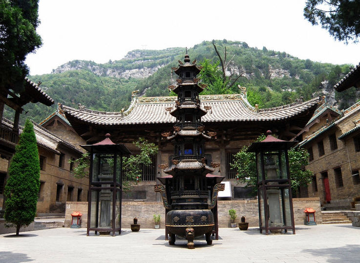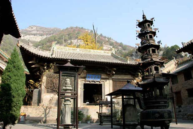 从掖门入寺,主寺是两进院落,西有偏院,东部高台上有楼阁,西北崖上还有佛殿,随山就势,总体布局风格独特。不过没有完整地保存下来,寺院内保留至今的有几座很有价值的古建筑。