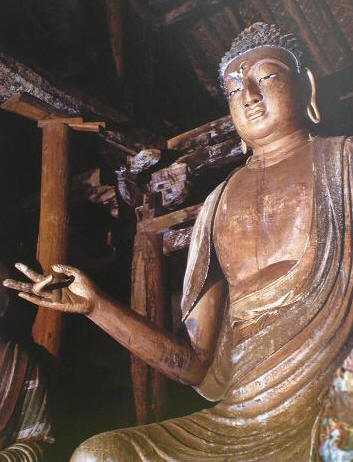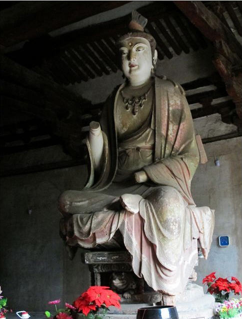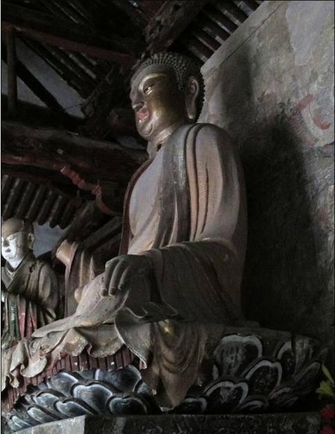 正殿3间中,有大而低矮的方形佛坛,佛坛上的弥勒佛等6尊唐代彩塑,是全国现存唐代寺观塑像3处70多尊中的其中一处。