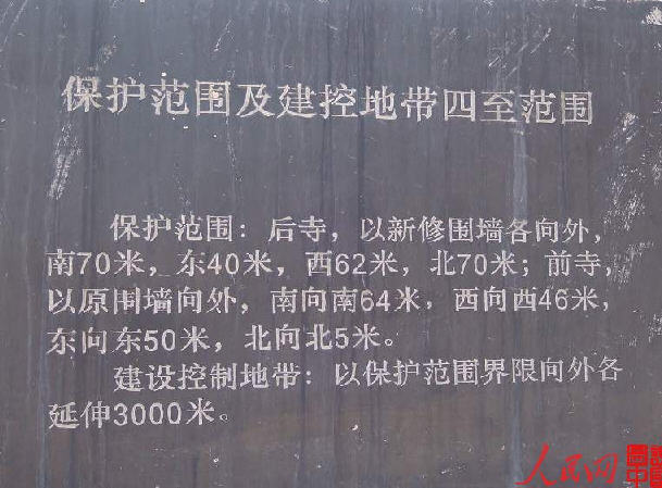 天王殿位于寺院的南部,面阔三间,进深四间,悬山顶,殿内立有塑造于明代(公元1368~1644年)四大天王像。千佛殿位于寺院北部的高台 上,面阔三间,进深三间,单檐歇山顶,殿内正中立有释迦如来本尊塑像,两侧为阿难、迦叶及文殊、普贤塑像。殿内东、西、北三壁为千佛悬塑,现仅存西壁的 200余尊。大士殿位于寺院的西侧,殿内供奉有北宋时期塑造的菩萨、罗汉像21尊。建于明代中期的地藏殿位于寺院的西北部,殿内塑有“十殿阎罗朝地藏”布 局的塑像群。卧佛殿、给孤长者殿、关帝殿、方丈院等建筑则是清嘉庆三年(公元1798年)重修或增建的。