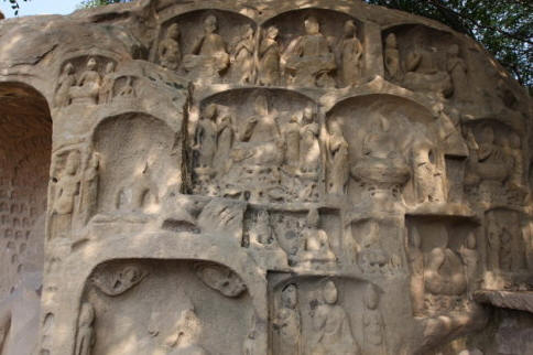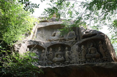 第三区为千佛洞,位于半山腰部,窟内方形,四面小佛龛满壁,近千尊,故 称千佛洞。这里的雕像都是唐代风格。第四区为方塔窟区,第五区为圆塔窟区,第六区为多宝龛窟区,第七区为大石窟龛区,第八区为佛山区,第九区为唐代龛区。 这些石窟龛内,雕像大都肌肉健美,衣饰贴体,艺术价值很高。