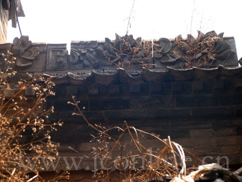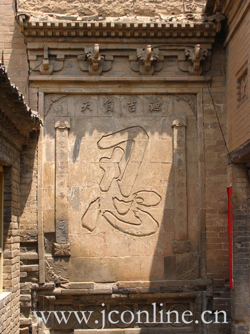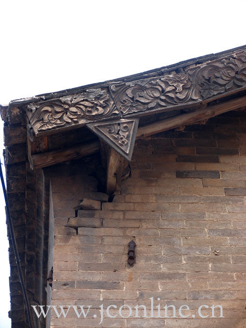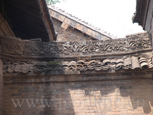 南殿为观音菩萨殿。前檐施方形石柱两根,柱头施大额枋,上有七组木拱。面阔三间,内供菩萨像。梁底悬空木雕浮刻西天取经系列图案围屋。