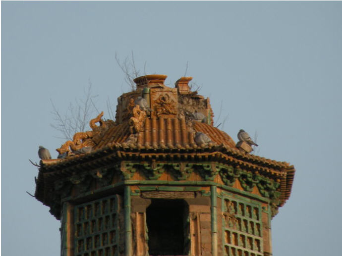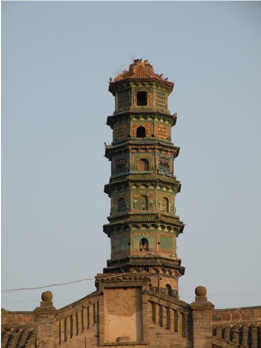 塔身一层后门洞左侧,嵌琉璃题记一方,上刻“大明万历三十七年五月二十二日阳城琉璃匠人乔永丰男乔常飞乔常远”。