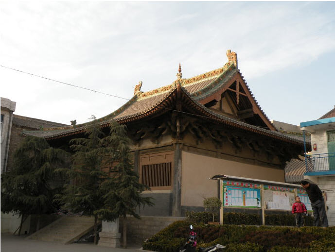 大雄宝殿面阔五间,进深六檐,单檐悬山顶。柱头斗栱五铺作双下昂,梁架结构为四椽栿对后乳栿通檐用三柱。寺内建筑琉璃脊饰独具特色,除献殿因天灾而塌毁 了部分琉璃外,其余琉璃脊饰均保存较好,尤其是戏台的琉璃有明嘉靖年号及工匠题记,从琉璃烧造工艺看,大雄宝殿和献殿均早于戏台,均是阳城乔氏琉璃存世的 代表作。寺内存民国时期碑1通。
