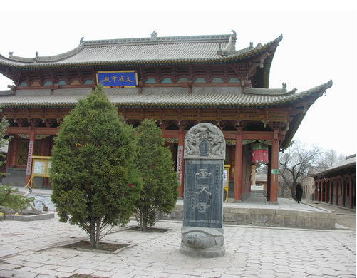 位于沁水县城东 35 公里郑庄镇东郎村北,据现存碑文记载:创建于唐,重修于五代后晋天福年间,宋建隆四年( 963 年)扩建,清乾隆二十四年( 1758 年)补修正殿, 1 962 年该村根据原貌重修中殿。该寺坐北面南,总体布局呈长方形,为前后两进院。有山门、中殿、后大殿、东西配殿、左右廊庞等。现大部建筑俱毁,仅存中殿。中殿 历史较早,现为元末明初遗物。主体结构斗拱、梁架为早期形制,面阔 3 间,进深 6 椽,平面形制为长方形,出檐深远,翼角翘起。殿顶单檐歇山式,举折平缓。梁架彻上露明造,四椽在金柱上搭交,结构规整,手法洗炼,檐下斗拱伸出华拱两跳, 补间斗拱用真昂,直接承托檐部负荷,柱头斗拱五铺作,无耍头。殿内东西山墙及后墙部分墙面绘有壁画,内容为佛、菩萨、胁侍等,共 29 尊,绘画手法为工笔重彩。所绘人物面目秀润,姿态端庄,色调纯朴,为明代壁画之佳品。殿内西南墙角上有“明成化拾贰年丙申”题记告知了壁画的年代。另有附 属文物碑刻四通。现为晋城市重点文物保护单位。