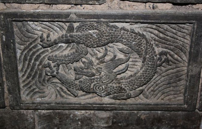 另外,在佛堂寺正殿内正壁的墙裙上,装砌了十余块各式砖雕,其内容有蟠龙、化生、花卉等图案,并且保存完好。