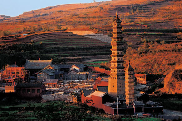 夕阳辉映下的琉璃双塔
