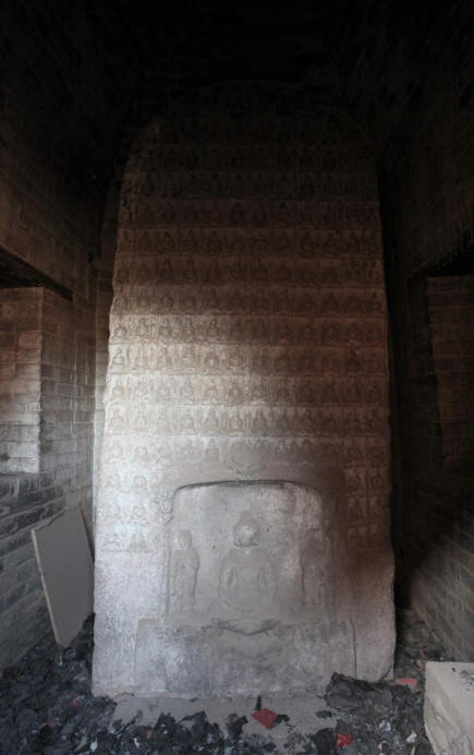 千佛造像碑 在陵川县城西17.5公里平川村。该碑为隋代文物,存于一砖石券碑亭内,由砂石制成。碑高3.2米、宽1.1米,全碑共雕有佛像300多尊。碑正面分上下 两部分,上部十三层小龛,顶层雕有佛像10尊,其余十二层每层雕有佛像12尊。下部有一大旨龛,内有一佛二菩萨,大佛龛两侧有三层小龛,每层雕有佛像2 尊。