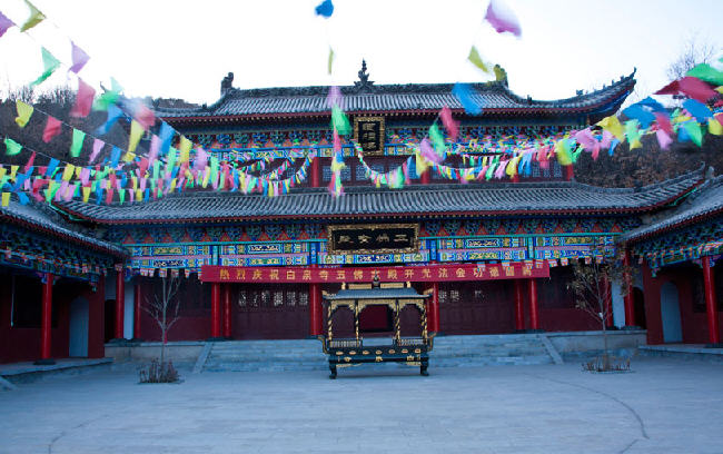 白 泉寺位于泽州县下村镇杨庄村,原名石婆窝,始建于唐敬宗二年。由于历史变迁,寺院设施在社会动荡变革中颓废荒凉。1996年经县人民政府审核,指定为合法 宗教活动场所,并进行修复完善。经过12年的修复于今年5月全面完成。新修复的白泉寺包括释迦宝殿、大雄宝殿、天王殿、钟楼和南北厢房,总占地面积523 平米。