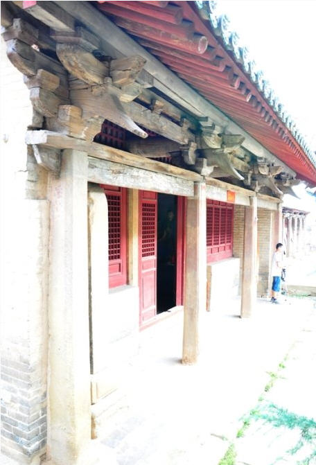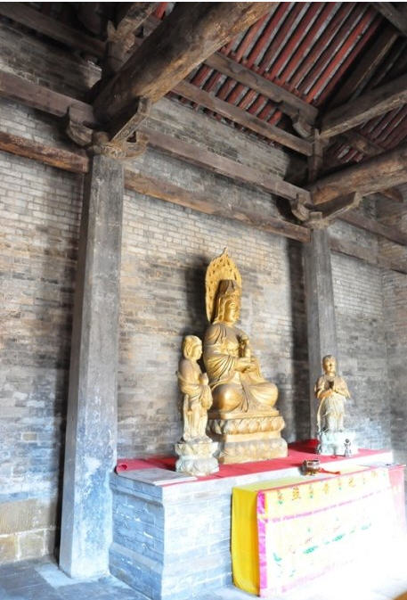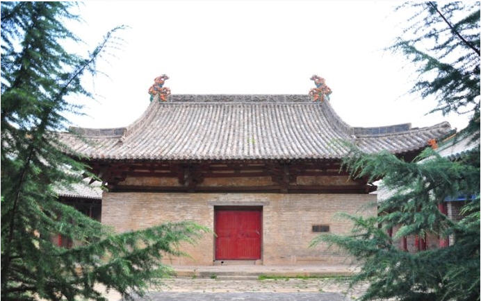 大雄宝殿内的墙壁上绘满了壁画,总面积有88.2平方米,是我国现存宋代壁画中面积最大、独具特色的珍品。殿内东、西、北三面墙壁都有壁画,画 面上还有画师郭发写的题记,不但记下了他自己的姓名,还记下了壁画创作的时间,是宋代绍圣三年(公元1096年)六月起始绘制的,可惜没有记下完成的时 间。我们从这件900年前的巨大艺术晶中可以看出,画师郭发是一位对人物、山水、界画都很精通的画家。界画是以宫室、楼台、屋宇等建筑物为题材,采用界笔 直尺划线的绘画。