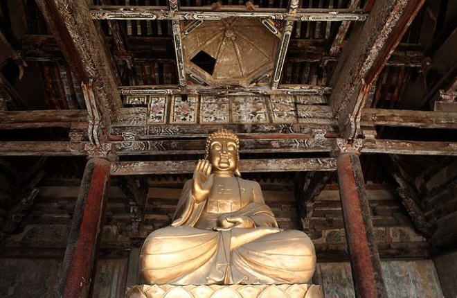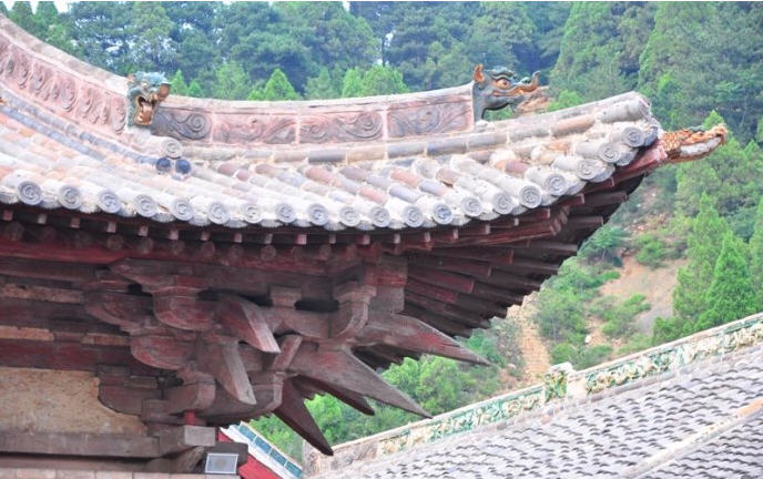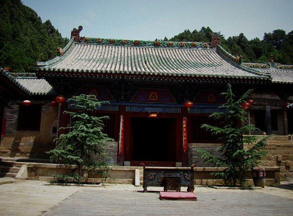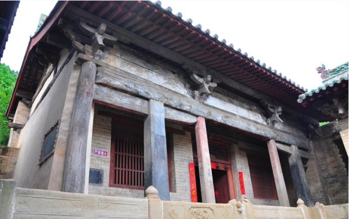 寺院中最有价值的建筑是宋代所建的大雄宝殿。这座殿宇面阔3间,进深也是3间,单檐歇山式的殿顶。整座殿宇呈方形,结构沉稳,配上高大的殿顶, 显示出雄浑的气势。前后檐明间开门,前檐次间是很大的破子棂窗,檐柱上刻着施主姓名和年月题记,提供了建殿的确切年代,清楚地证明了这座建筑的文物价值。 殿宇的梁架结构、斗棋等全部都是宋代规制。殿内梁架、斗棋上的彩绘图案非常精美,与宋代《营造法式》中的彩绘图案式样完全一致,可以说是宋代建筑彩绘的最 佳实例,同时又是我国古代建筑中保存得最为完整的宋代彩绘图案。