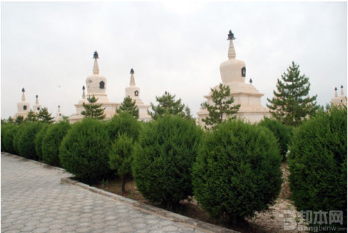 穿过门牌建筑,沿笔直宽敞的大道步入白塔寺,只见院内苍青掩映,白塔林立,场面极为壮观。整个白塔寺遗址由寺院,塔院,塔林等建筑构成。寺院有围墙,东西420米,南北430米,院内探明的殿基全部是用砖和石砌的,说明当时寺院规模的宏大。塔林是白塔寺最为壮观的景点,白色的塔在翠柏的衬托下,直刺蓝天,显得气势恢弘。大小不等白塔,紧紧围绕着灵骨塔,以十字折角形分布,高低错落,排列有序,在院内形成一道独特的宗教文化景观,使白塔寺显得肃穆庄重,令人肃然起敬。