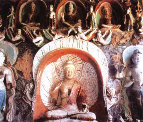 天梯山石窟,是我国开凿较早的石窟。据范文澜著《中国迥史》记载,天梯石窟始创于北凉王沮渠蒙逊时(40I~432)距今已1500多年,早于云岗石窟和龙门石窟。北凉王沮渠蒙逊是临松卢水胡人,先氏为匈奴左沮渠,遂以官为姓氏。沮渠蒙逊信仰佛教,从日常生活到军事政治都表现出对大自然的顶礼膜拜:打仗要看日月星辰的变化,月满则进攻,月亏则迟兵,带有浓厚的宗教色彩。东晋义熙八年(412),蒙逊由张掖迁都武成,自称河西王,设置百官,修缮宫殿,大兴佛教,并“取佛书以名其于”称“菩萨”(梵语,意为正道)。不久其母病故,蒙逊散钱赈济百姓,还下沼自责自谴,实行大赦,并在武威南部天梯山上召集工匠,劈山开路,伐木毁林,开凿石窟,大造佛像。