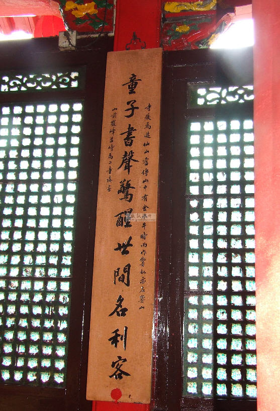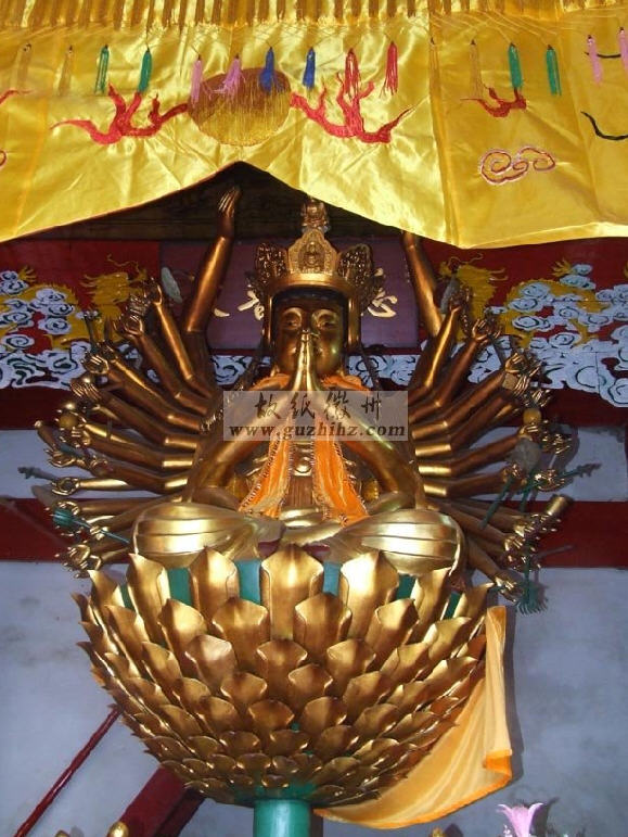 龙山寺主殿供奉“千手千眼观音菩萨”,西边是地藏王菩萨殿,东边是弥勒殿和南海观音殿。据传龙山寺的菩萨颇为灵验,所以香火甚旺。寺院的规模不大,但是小巧精致,主殿背倚的小龙山,也是大自然的造化,自然的造化仿若假山一般,别具观赏性。