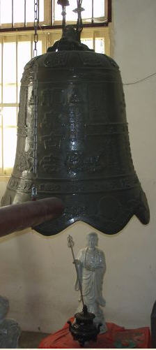 唐代张继的一首《枫桥夜泊》,使佛教的钟和佛教的寺庙名声远播。北京大钟寺的永乐大钟被称为“钟王”,铸成于明成祖朱棣时期(公元1403——1424年),钟高6.75米,直径3.3米,重约46.5吨,铸造工艺精良,且在钟的内、外壁上两面铸造佛经、咒语100多种,包括佛门巨著《大方广佛华严经》一部。五台山显通寺有一梵钟,钟楼上有匾额,题有“震悟大千”四字,传说凡鸣此钟者,其声音可传至地狱,可警觉地狱众生,令他们产生惭愧心、忏悔心,进一步趋向解脱之路。