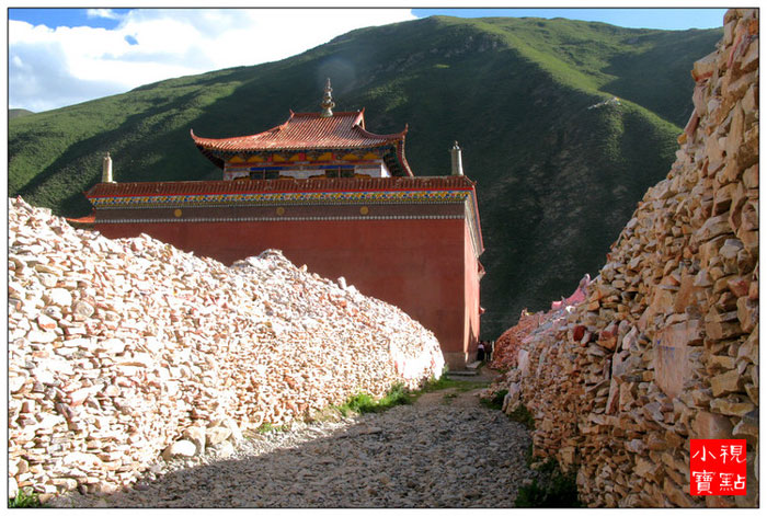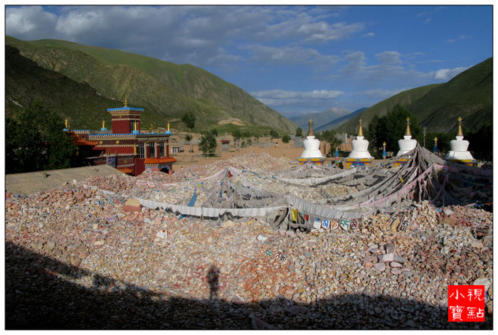 桑秋帕旺殿堂。由佛教高僧嘉纳道丁桑秋帕旺(又名嘉纳活佛)于康熙年间1715年创建。到上世纪五十年代历经240年的堆献,曾形成过东西长450米、南北宽100米、经石达25亿块之多的浩大规模。