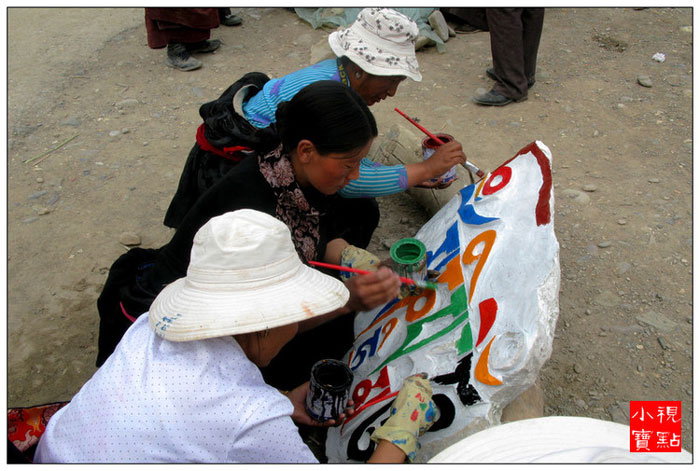 虔诚的人们在石头上刻上六字真言和各种经文和佛像,并饰以各色颜料