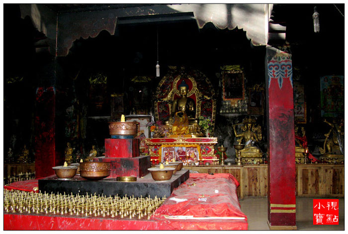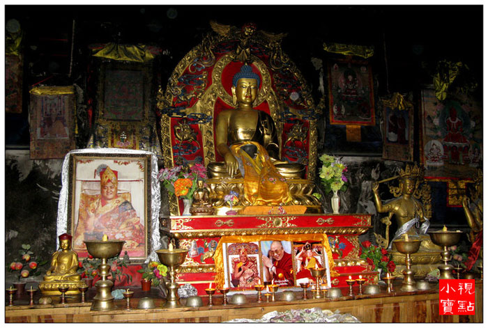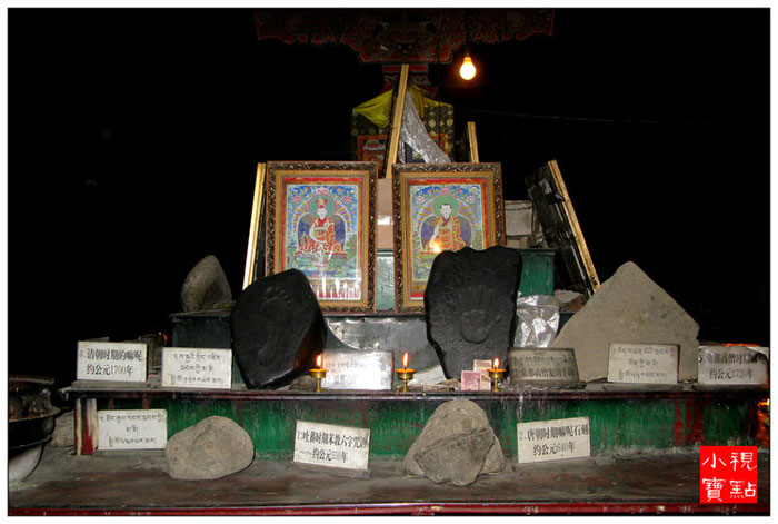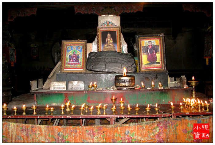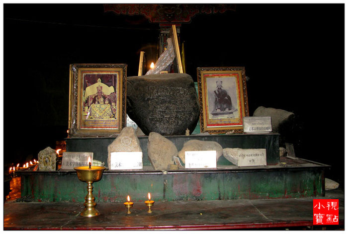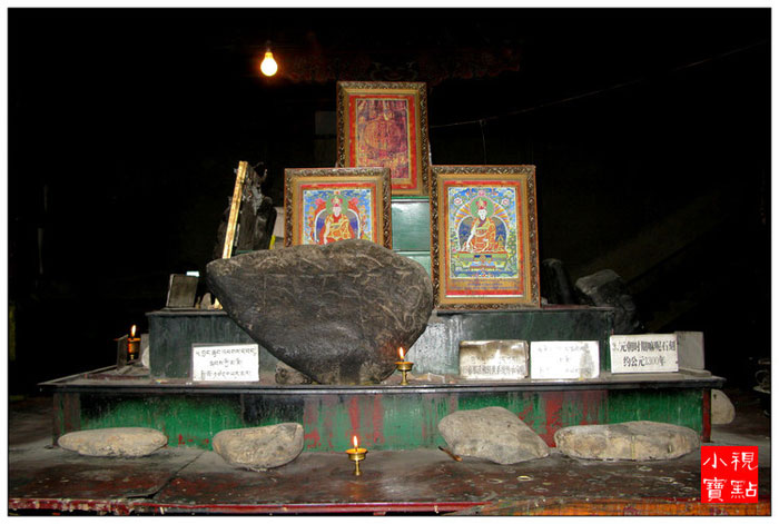 佛堂内还供奉着创建石经城的第一世嘉那活佛塑像和自显嘛呢石块
