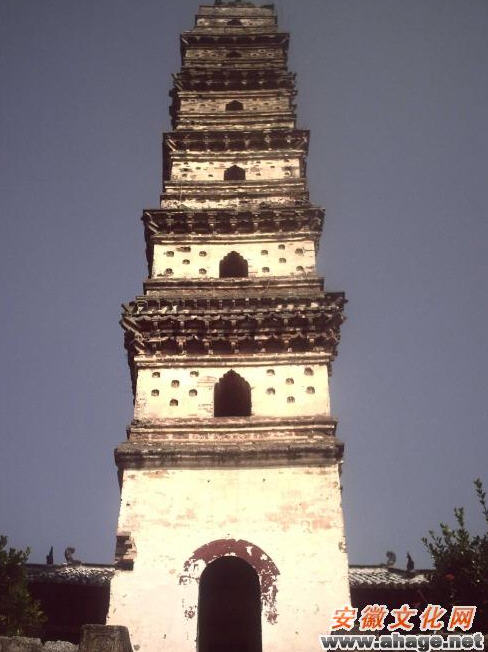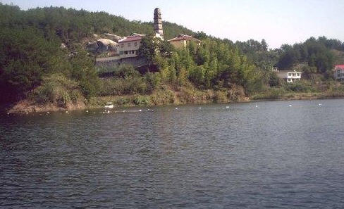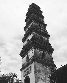 前面一座百亩游湖,碧波荡漾,倒映塔影,九条隆起的山岗朝对,名日九龙戏珠。