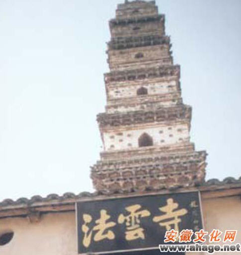 寺内五佛塔亦名法云寺塔。据传始建于三国魏(225—230)曹操率大兵征伐东吴经天堂至塔儿岭见东汉初期建造的一座宝塔形似宝剑,对出兵不利,立即率兵撤迁向东方后冲顶端建造一座雄伟壮丽的宝塔——法云寺塔, 以示利伐东吴。两下距离约五公里。 距今已有一千七百余年,是安徽省历史最悠久的古塔之一,也是全国四座四方形古塔之一。