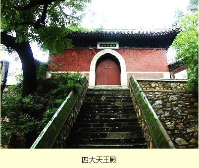 第一进“弥勒殿”,殿内供奉大肚能容、笑口常开的弥勒佛和背后护法韦驮菩萨,两边为高大威严的四大天王。