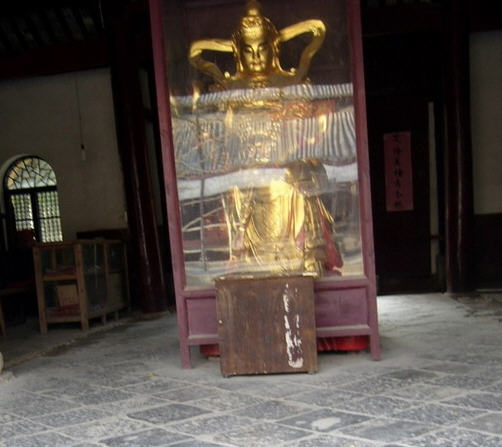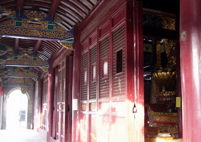 走到西大寺巷尽头,你可看到挂着“寿县博物馆”牌子的大门,这就是报恩寺了。越过高大红色的照壁,迈进山门,即到第一进大院,院内苍松翠柏,郁郁葱葱。院正中是宋塔地宫,原为九级的北宋舍利砖塔,后倒塌六级,残存的三级因危及游人安全, 于1977年拆除。清基时发现了塔下的地宫,地宫有彩绘壁画及金、银棺等珍贵文物。再穿过二佛殿,便来到第二进深院,两棵千年银杏遮天蔽日,把金碧辉煌的大雄宝殿和东西廊房掩映在绿荫之中。